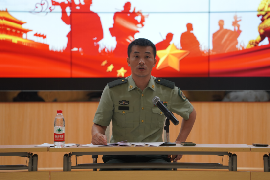 学校党委武装部国防教育科苏德宇老师介绍开云军迷协会社团建设情况和学校征兵工作开展情况