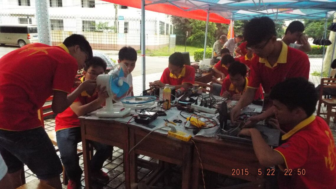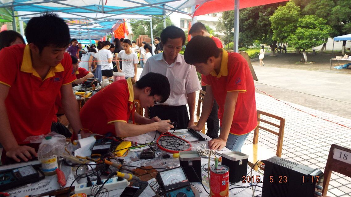 2015523日(星期六),开云kaiyun官方网站各社团在学生团体联合会理事会带领下在滨水广场举行了以“公益一条街”为主题的活动,电子科技协会主要开展了义务维修活动。