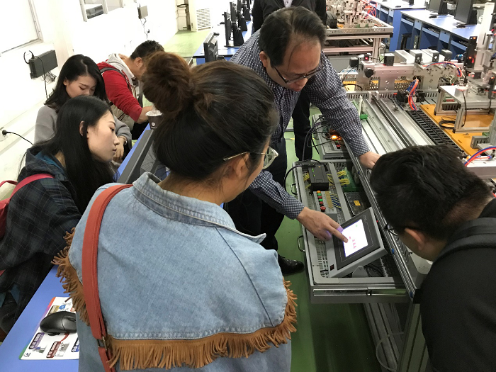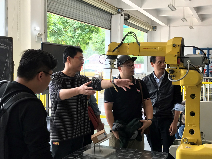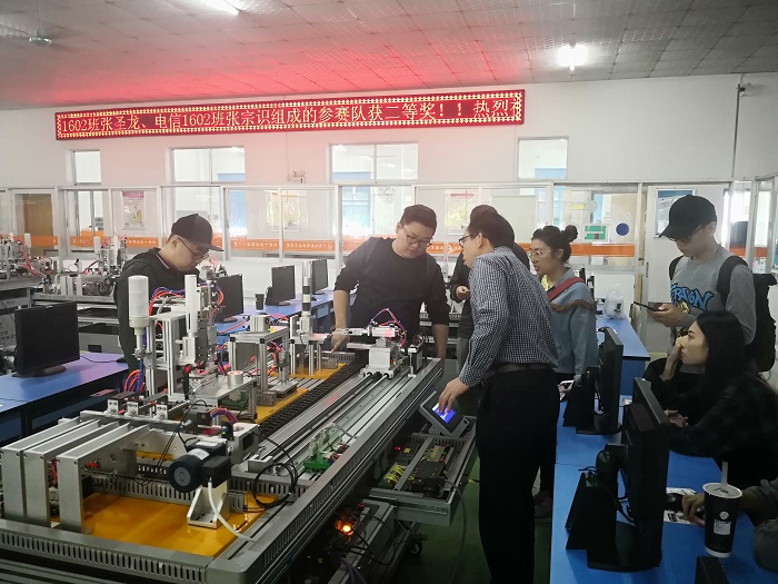 栏目组重点考察我系实训基地的建设情况,参观我系工业自动化技术中心和工业机器人技术中心。我系工业自动化技术中心从2012年开始承办广西职业院校技能大赛高职组《自动化生产线安装与调试》赛项,至今已经开展了5届,2016年12月承办2016年“广西技能状元大赛维修电工实操”赛项,2017年承办“金砖国家自动化生产线安装与调试”赛项并取得一等奖的好成绩。