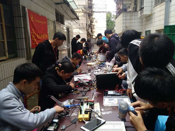距上一次11月11日北湖南社区义务维修活动刚过去1个多月,12月16日上午我院电子科技协会践行十九大精神,进社区,服务群众,学会组织新老三十余名成员前往衡秀里社区进行义务维修活动。 当天,协会衡秀里社区为社区居民提供电视机、电磁炉、电风扇、电饭煲等电器的维修服务。街坊邻居的对同学们的文明礼貌,耐心、细心的接待及热情快速的服务,啧啧称赞。“滴”,接上电后,送修电磁炉的又能重新发出悦耳开机声的,阿姨直夸我们的小伙伴“小伙子,好能干”。本次活动共修复三十余件物品。 通过这次的义务维修活动,同学们不但收获了社区群众的赞美,更加懂得团结友爱,同时增加社会经验及提高实践能力。在展现电子科技协会的新时代雷锋精神的同时,也传达了我国社会主义核心价值观以及中华传统美德,从自身做起,践行十九大精神。