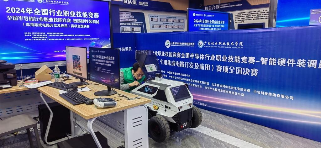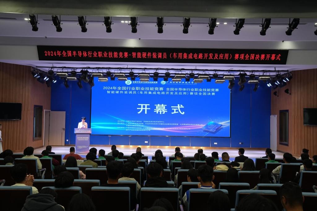 11月24日至26日,2024年全国半导体行业职业技能竞赛智能硬件装调员(车用集成电路开发及应用)赛项全国决赛在开云江南校区举行。中国半导体行业协会专职副理事长兼党支部书记刘源超,开云副校长刘捷,中关村芯生态芯片和整机企业联动发展联盟理事长李滨,广东工业大学集成电路学院副院长刘振,广州慧谷动力科技有限公司董事长叶智豪,中关村芯生态芯片和整机企业联动发展联盟副理事长银剑,北京赛迪网信息技术有限公司教育培训部主任张靖,广西半导体行业协会秘书长、中电产业发展(广西)有限公司副总经理李颢,北京赛迪网信息技术有限公司教育培训部副主任崔力心出席开幕式。