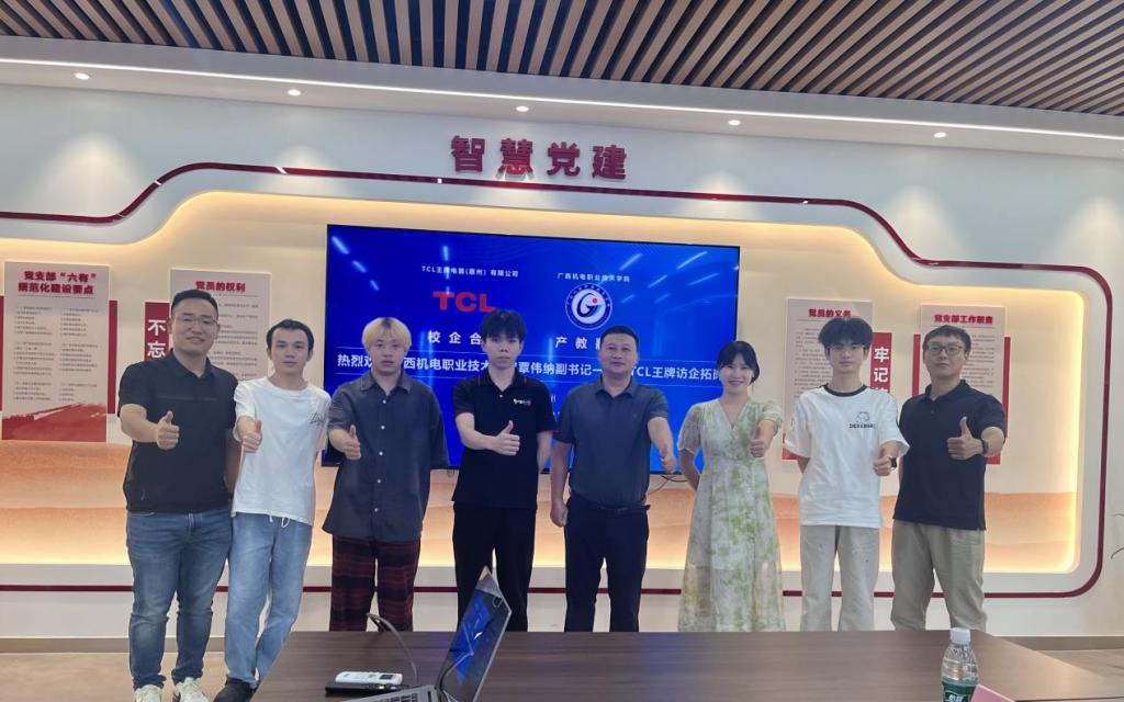 8月12日上午,团队抵达TCL王牌电器(惠州)有限公司。公司人事主管高勇详细讲解企业发展历程、企业文化内涵及行业竞争优势,特别强调企业积极响应国家职业教育校企合作号召,在人才联合培养、技术协同创新等方面取得的成果。在随后召开的毕业生座谈会上,覃伟纳副书记向在岗毕业生表达亲切问候,他勉励道:“大家在岗位上要牢记社会责任,年轻阶段更要沉下心积累经验、打磨技能,无论是深耕技术领域,还是向管理岗位进阶,都需脚踏实地,实现个人价值与企业发展的同频共振。”