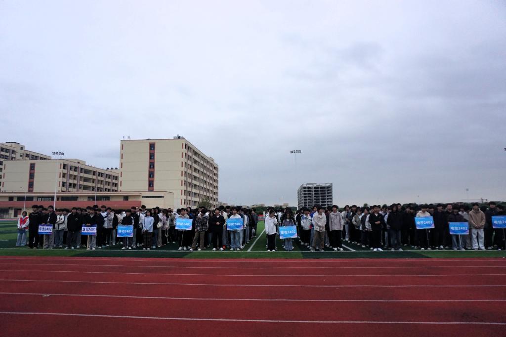 秋晨微凉,朝阳初升。2025年11月3日星期一早晨7点,电子信息工程学院在学校田径场隆重举行升旗仪式,学院2024级全体学生以饱满的精神状态齐聚于此,共同迎接这一庄严时刻。