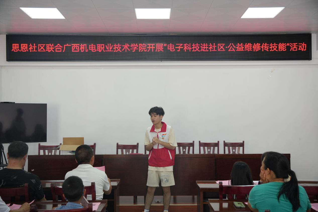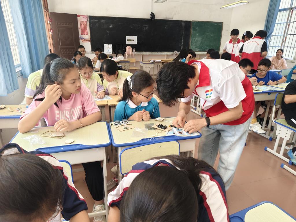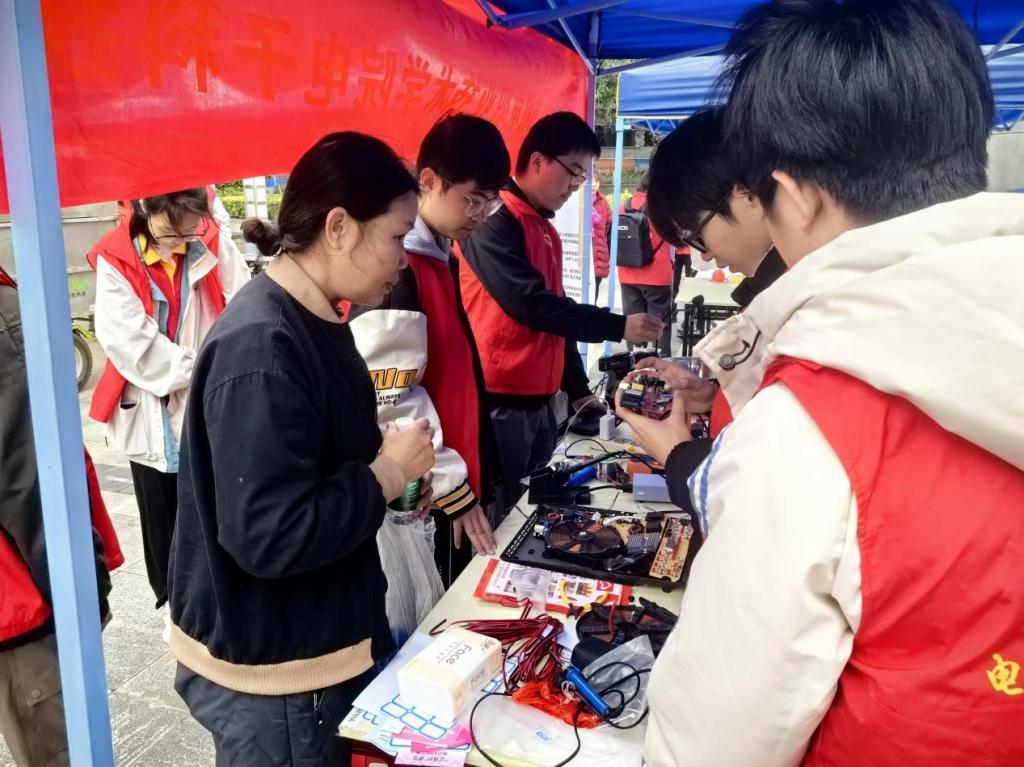 在“志愿服务”实践中,学员们积极践行“奉献、友爱、互助、进步”的志愿精神,分批次分时段到实训室、办公室、比赛场地等开展志愿服务活动。同时,依托团委、学生会和电子科技协会,学员们积极参与各项服务实践。在“中文+电子信息”培训期间,学员们还协助老师,面向泰国师生开展“机器狗制作、电动车维修技巧训练”等丰富多样的培训实践,助力泰国师生提升技能。此外,学员们积极参加暑期“三下乡”社会实践活动,积极投身科技研学、心理辅导、义务维修等各项志愿服务活动中。通过志愿服务,学员们在实践中成才,在服务中成长,并有效为师生服务,以技能帮助群众,以青春服务社会。