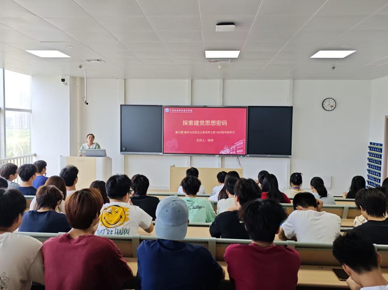 在第一讲的专题学习中,电子信息工程学院团委书记陈婷老师首先开展了题为《探寻建党思想密码》的专题学习会。陈婷老师借助《觉醒年代》这部电视剧,与学员们分享和探讨了百年前先辈们是如何觉醒、中国共产党是如何建立、青年如何成为时代先锋等问题。通过学习,学员们深刻感受到中国共产党诞生的历史必然性和道路选择的正确性,也从一个个爱国先辈身上看到人生路上奋斗的目标,深感自己肩负着时代赋予的重任,备受鼓舞和激励。