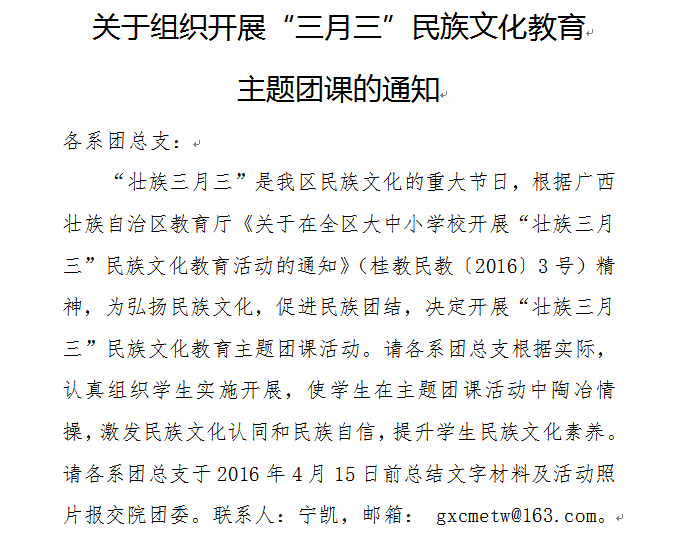 转发关于组织开展“三月三”民族文化教育主题团课的通知