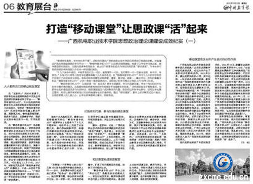 翻书、查资料、讨论,开云kaiyun官方网站的思政课就这样成功的“移动了课堂”。很多晚上,学生们在宿舍“走家串户”,相互请教着“静思学堂手机APP”上发布的题目。网络教学平台的讨论版上,上百个话题持续更新。现在已经形成了学生学习自主、教学管理移动化、考核学习过程与结果相结合、线上线下教育有机配合为主要特点的思政课教学新模式。实现教学内容、教学手段、考核方式、实践教学等全方位的改革与创新,提升了教育教学效果。目前,基于移动学习平台应用的思政课教学新模式已经面向全院各专业班级推广实践,成效显著。2017年,“‘互联网+’时代高职思想政治理论课‘移动课堂’的研究与实践”荣获广西职业教育自治区级教学成果二等奖。可以说,这样改革后的课堂才更富有时代感。