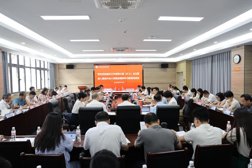 9月19日上午,学校在笃行楼507会议室召开党的建设工作领导小组(扩大)会议暨深入贯彻中央八项规定精神学习教育总结会,深入学习贯彻落实习近平总书记关于作风建设的重要指示精神,总结学校深入贯彻中央八项规定精神学习教育,对巩固拓展学习教育成果、推进作风建设常态化长效化进行研究部署。学校党的建设工作领导小组组长、党委书记黄小敬主持会议并讲话。学校党委副书记、校长吴世先出席会议。