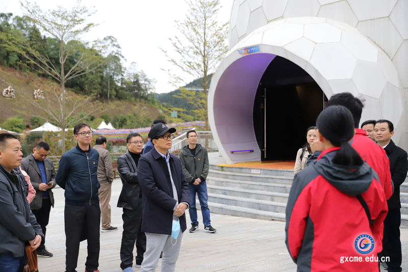 走进球幕轨道影院,360°领略“高、新、精、尖”技术,欣赏“壮美广西”飞行特效电影,感受身临其境的高科技虚拟现实技术带来的穿越时空、奇幻无比的视觉震撼。运用指向光源和最新数码技术制作影像,给体验者带来一场沉浸式、无边界、全景式的空间视觉震撼与无与伦比的美感。体验结束后,梁辉书记与高峰林场球幕轨道负责人进行的详细的沟通交谈,了解球幕轨道建设和制作的情况,准确把握此技术在广西改革发展过程中的定位、代表性和意义等。探讨如何运用高科技技术助推职业教育发展。