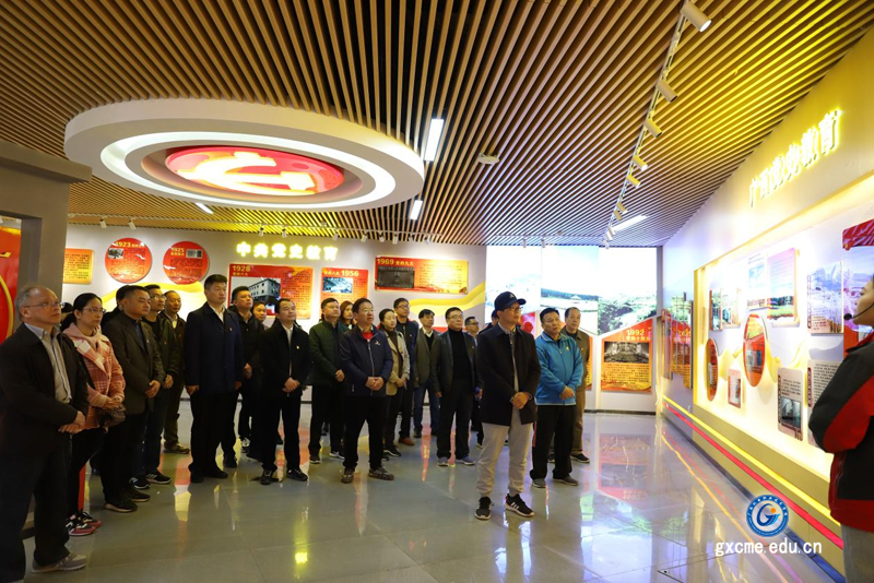 活动之初,大家跟随讲解员,参观了高峰林场党性教育基地。全体党员通过观看图片资料、实物等,共同回顾了党的历次代表大会的光辉历史、广西党史以及优秀共产党员先进事迹,了解革命先烈带领人民作战、生活、生产的场面与党史事实,深切感受到了老一辈革命家高瞻远瞩的战略眼光与英勇无畏的革命斗争精神,接受了一次生动而深刻的革命传统教育的洗礼。随后,学校党委书记梁辉带领党员们重温入党誓词,全体党员佩戴党徽,举起右手、握紧拳头,庄严宣誓。铿锵有力的誓言表明了大家坚守初心、忠诚于党、立足岗位、坚定为党的教育事业努力奋斗的信念和决心。