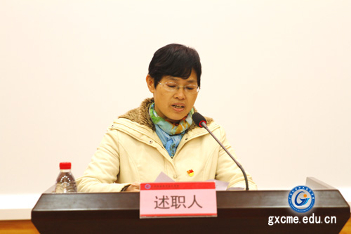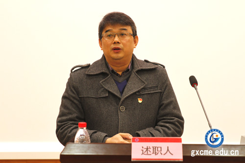 在会上述职述廉。学院党委书记冯国忠,副书记、院长赖晓桦,副书记、纪委书记陈科鹤,副院长蒋文沛、梁庆杰,总会计师廖玉