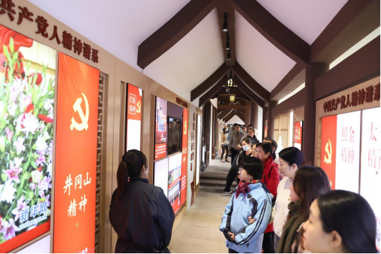 参观中国共产党人精神谱系主题园“两厅一廊一馆”