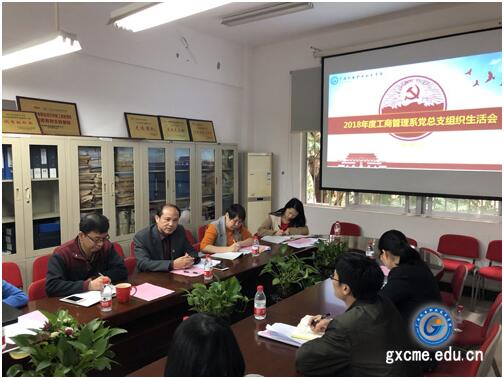 3月27日上午,工商管理系党总支部召开2018年度组织生活会。学院党委副书记、纪委书记陈科鹤到会指导。工商管理系党总支部委员、各支部委员参会。系主任韦传亮受邀列席。