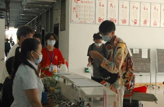虽已入秋,但今日的南宁烈日杲杲,学校大门防疫志愿者老师一丝不苟地为每一位同学检查返校凭证、测温、消杀行李、更换口罩,细心保障着大家的生命安全与身体健康;在迎新大道上,身着红色系服的志愿者学长学姐以及学院团委、学生会的工作人员,手提肩扛,引导着新生们走向报道区,在此刻,他们充分发扬商学院“传、帮、带”精神,不怕苦、不怕累,细心地指引新生完成报到流程,并积极介绍校园环境和大学生活经验,直至新生入住宿舍。