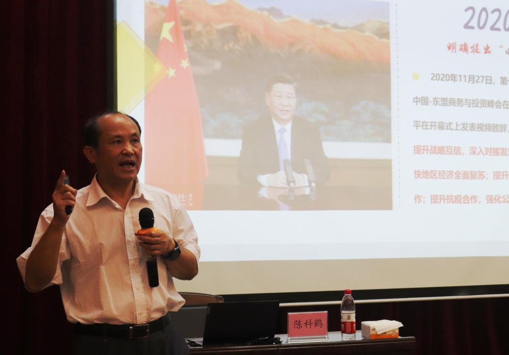 陈科鹤副书记结合主题,分别围绕牢记领袖嘱托,凝心聚力建设新时代中国特色社会主义壮美广西、党的十八大以来广西经济社会发展成就回顾以及建设新时代中国特色社会主义壮美广西的战略举措等三个方面进行授课,系统讲授习近平总书记对八桂地区的深厚情缘与不解之缘,着重阐述广西的十年脱贫攻坚史、地区支柱产业的发展史以及区域民族文化的传承史等,以自治区“1+1+4+3+N”这一目标任务体系要求为准则,奋发有为,锐意进取,不忘初心,紧跟中国共产党的领导,在建设新时代中国特色社会主义壮美广西的道路上阔步前进,为实现建设新时代中国特色社会主义壮美广西的宏伟目标作出应有的贡献。