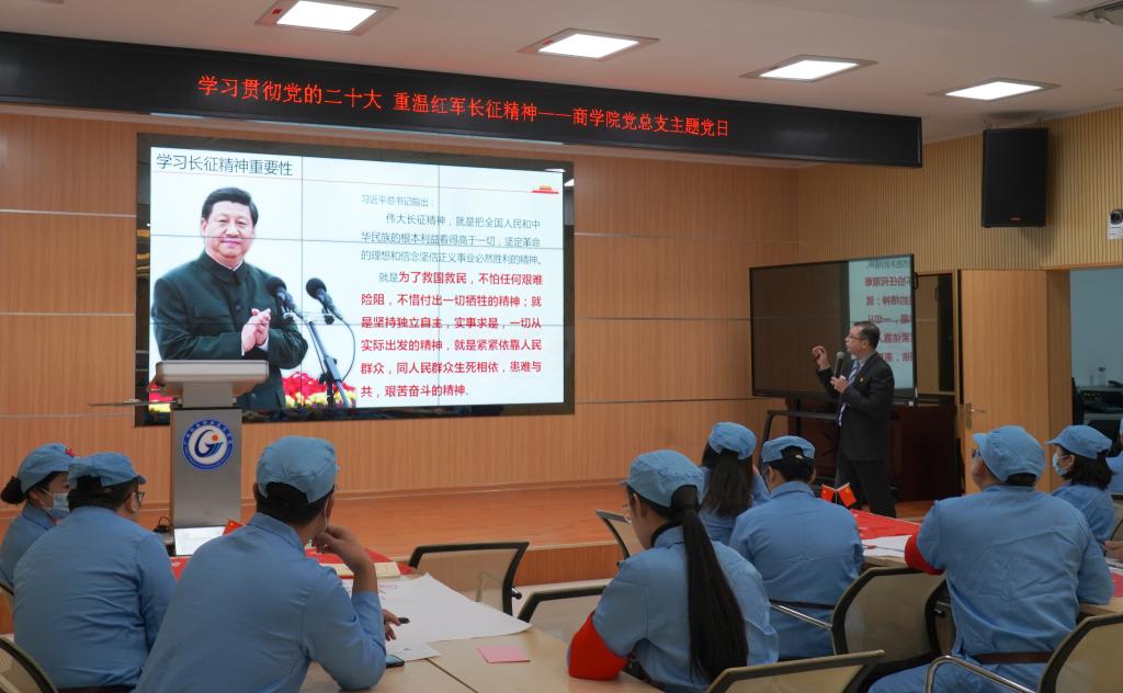 12月10日,商学院党总支在学校本部博远楼5楼第二学术报告厅通过沙盘演绎方式开展了“学习贯彻党的二十大,重温红军长征精神”主题党日活动,让全院党员教师在“战争”中学习历史,在学习中升华党性。