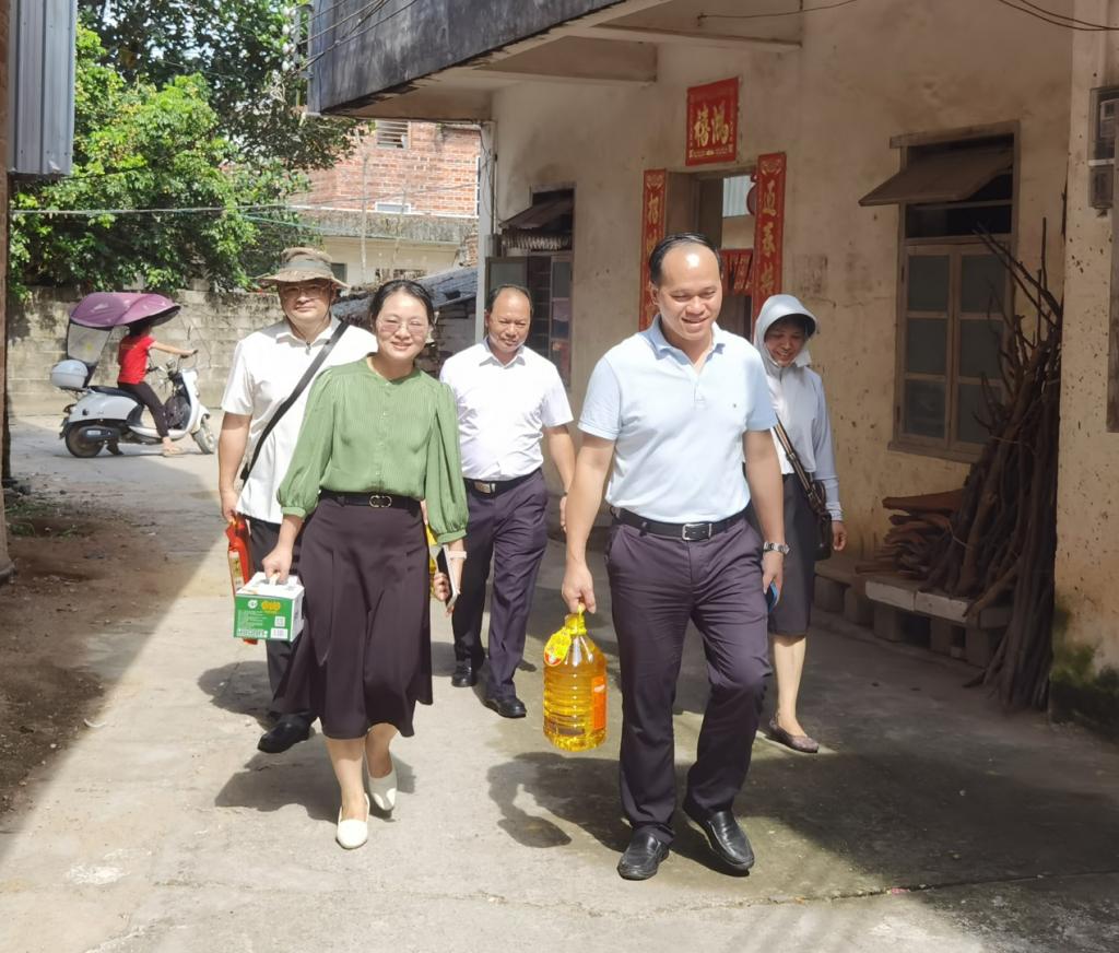 为深入贯彻落实党的二十大精神,推动主题教育走深走实,进一步检验乡村振兴定点帮扶工作成效。7月15日,开云kaiyun官方网站副校长黄政艳一行对博白县顿谷镇定点帮扶村进行了一次大回访调研并展开座谈。校党委教务处、保卫处、质量管理中心、商学院等部门主要负责人陪同调研走访,旧金村驻村工作队员、村“两委”干部参加座谈。