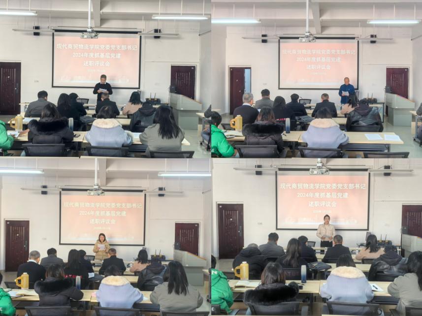 2025年1月10日,现代商贸物流学院党委在学院206会议室召开2024年度党支部书记抓基层党建述职评议会。学院领导班子成员、各支部书记及委员、党代会代表、教代会代表、党员代表参加会议。由学院院长习波主持会议并讲话。