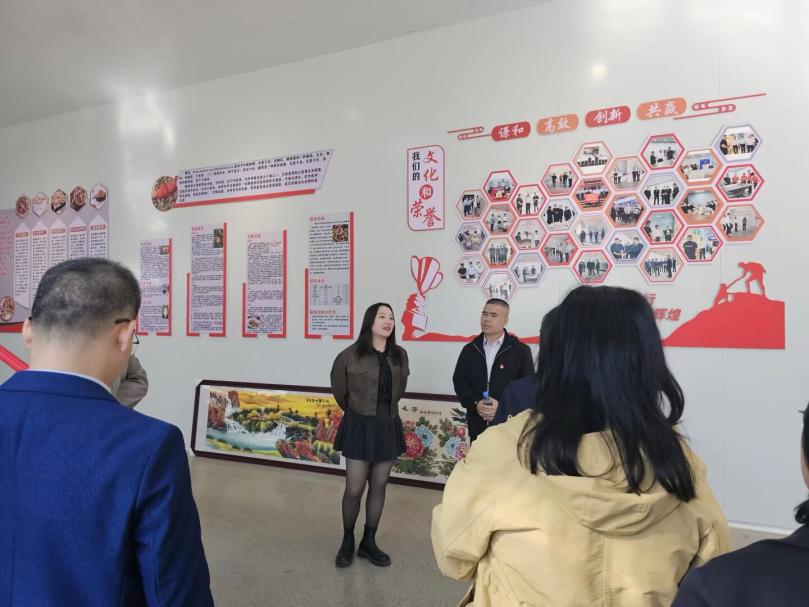 上午9点,调研团队来到靖西市广康食品有限责任公司。在经营部经理农彩蝶的陪同下,团队深入参观了生产车间。党员骨干们积极了解产品加工流程,学习了解“党员示范岗+技术攻坚组”的帮扶模式,以及地方政策支持所取得的实际成效。结合企业帮扶部署,团队与企业党员进行了座谈交流,针对发展中的瓶颈问题,提出了“党建+专业+产业”的综合解决方案,计划建立支部共建机制,组建党员攻坚小组,推动校企深度融合。