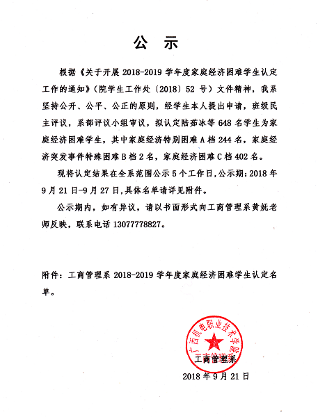 《关于开展2018-2019学年度家庭经济困难学生认定工作的通知》公示