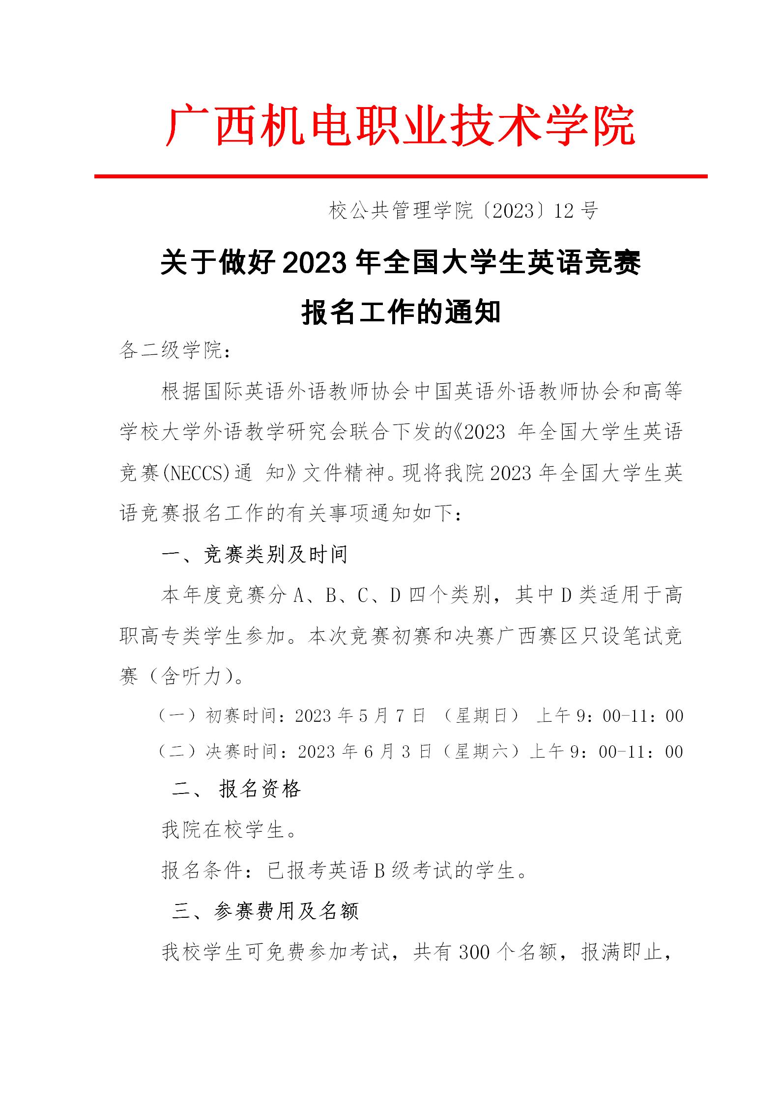 关于开展2023年全国大学生英语竞赛报名工作的通知