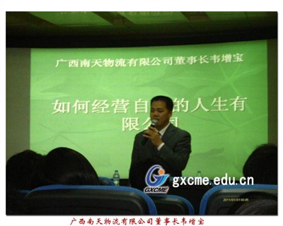 “如何经营自己的人生有限责任公司”——广西南天物流有限公司董事长韦增宝为我院师生...