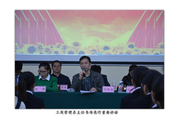 2015年11月12日,共青团工商管理系第十二次代表大会、第十二次学生代表大会在图书馆多功能厅隆重召开。工商管理系主任韦传亮、党总支书记石月皎、团总支书记林霞和全体辅导员出席会议。参加...