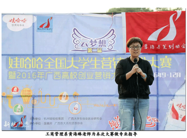 娃哈哈全国大学生营销实践大赛暨2016年第二届“云梦想”广西高校创业营销大赛于2016年10月15日在开云kaiyun官方网站滨水广场举办启动仪式。广西大学生创业就业研究会副秘书长罗曾华先生,...