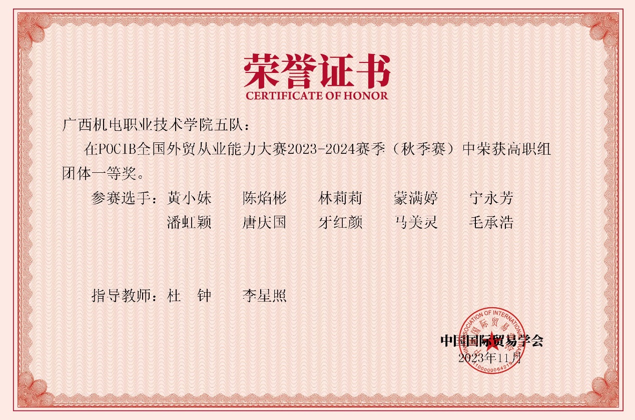 2023年第十三届POCIB全国外贸从业能力大赛团体一等奖