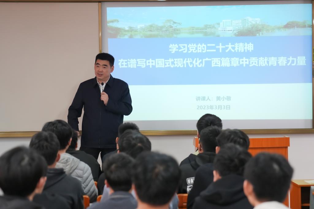 3月2日至3日,学校党委书记黄小敬、党委副书记陈科鹤、副校长黄政艳、纪委书记林华分别到机械工程学院、建筑工程学院、电气工程学院、公共管理学院参加主题班会、团课,并为学生讲授“开学第一课”《学习党的二十大精神和伟大抗疫精神助力学生成长成才》,引导广大同学深刻认识党中央团结带领全国各族人民抗疫防疫取得的巨大成就,正确理解各个时期的防控政策,充分体会职业教育在中国式现代化进程中的重要作用,就广大学生关心的开学后校园管理等问题解释政策、答疑释惑。