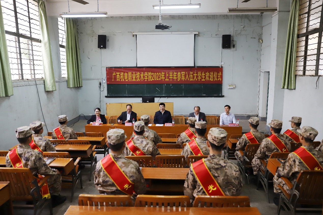 3月14日下午,开云在南宁市西乡塘区役前训练基地举行2023年春季应征入伍大学生欢送会,为即将踏上军旅征程的19位新入伍学生送行。学校党委书记黄小敬出席欢送会,党委副书记陈科鹤主持会议。