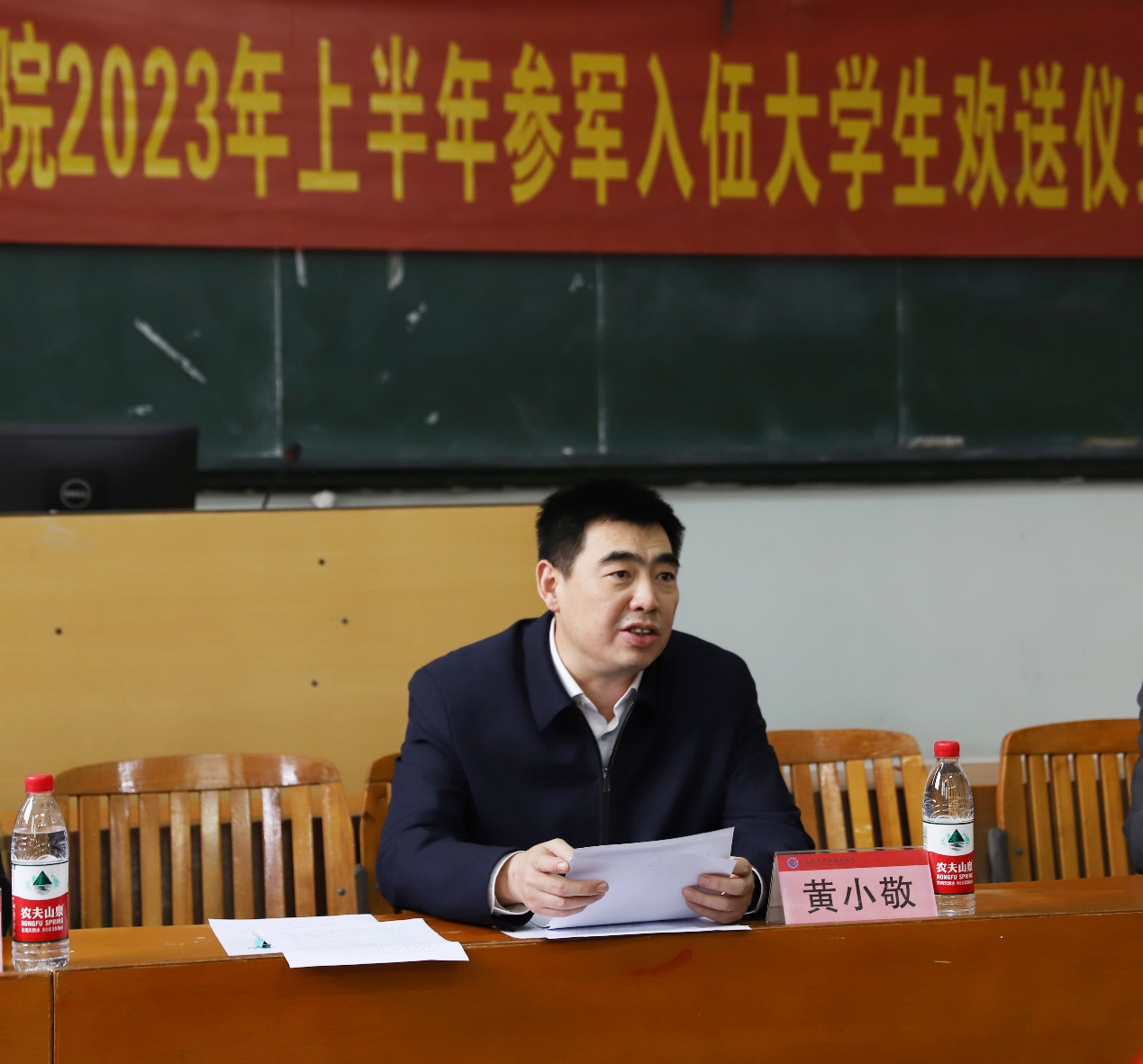 黄小敬代表全校师生向光荣应征入伍的同学们表示热烈祝贺,向积极送子参军、支持国防建设的学生家长们致以崇高敬意,对学校征兵工作人员的辛勤付出表示衷心感谢。