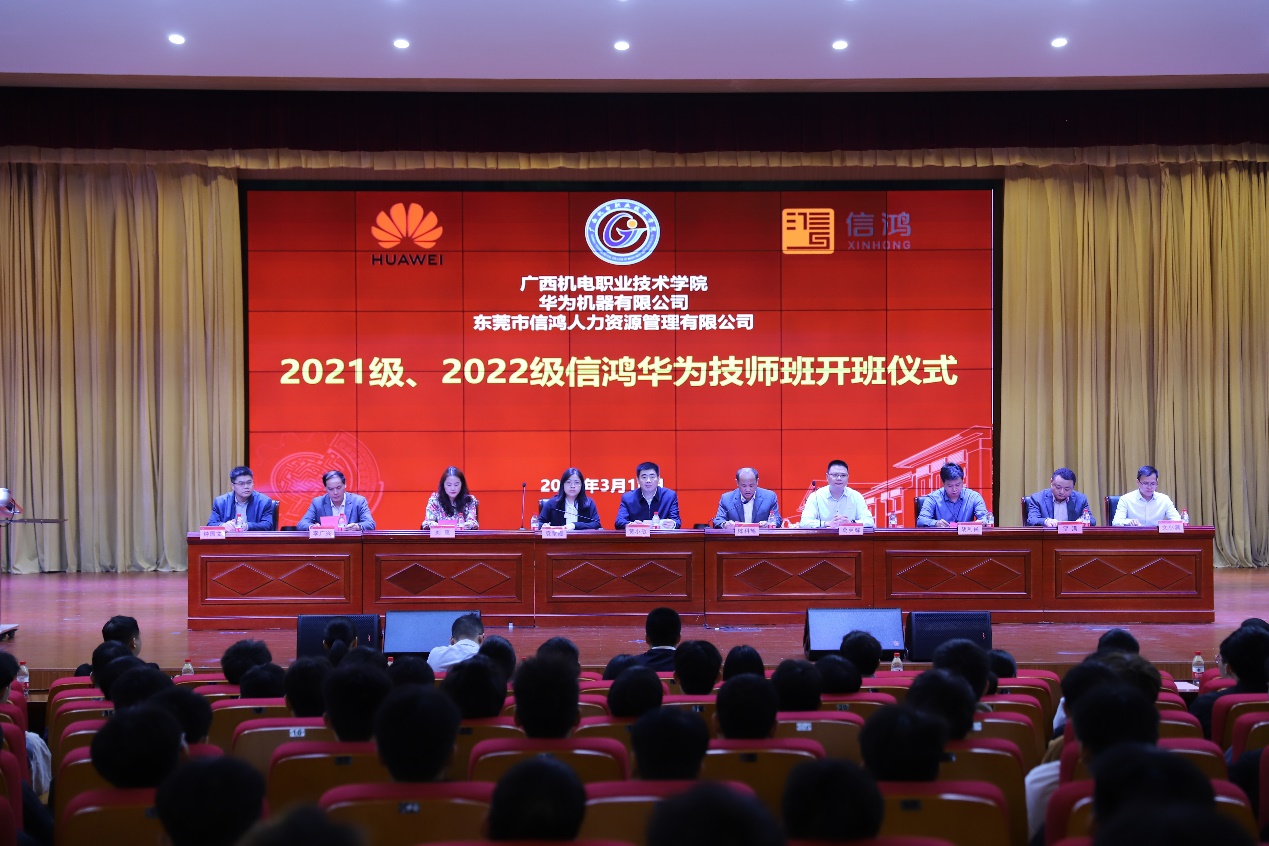 开云从2019年开始举办的“信鸿-华为维修技师班”、“信鸿-华为技工班”,已经连续举办了5届,先后为广西培养出了近200名达到华为技师标准的高技术高技能人才,输送了近千名优秀学生进入华为工作,树立了“互惠共赢、协同发展、共同创新”的产教融合新典范。此次信鸿华为技师班开班,是开云主动适应广西产业布局调整和产业发展,推动产教融合、协同育人、开放办学的重要举措,标志着开云与华为机器有限公司、东莞市信鸿人力资源管理有限公司的校企合作模式推向新的高度,形成更加长效的合作机制。校企双方将精诚合作,共同把订单班的全体学生培养成学得好、用得上、留得住、有发展的高素质技术技能人才,为强国建设、民族复兴作出更大贡献。
