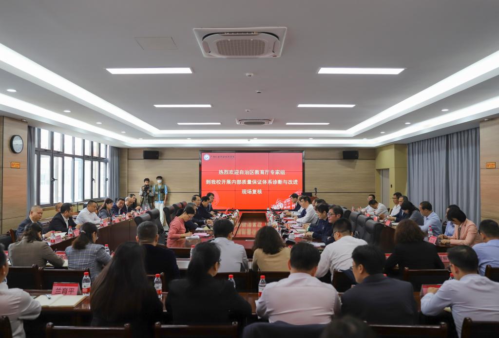 4月7日,以自治区诊改专委会主任委员、广西工业职业技术学院党委书记韩志刚为组长的诊改复核专家组一行5人受自治区教育厅委派莅临开云,通过听取汇报、座谈交流、深度访谈、查阅资料、实地走访等方式,对开云内部质量保证体系诊断与改进工作开展现场复核。