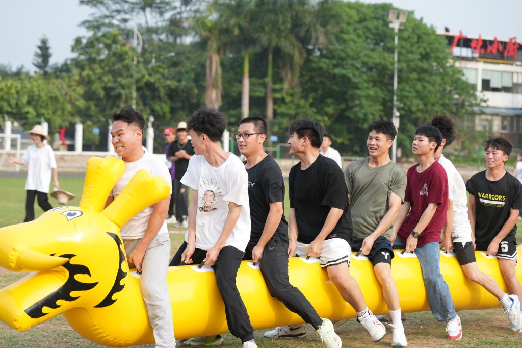 在高脚马竞速比赛中,选手们需要骑着高脚马在场地上飞速奔跑,看似简单却需要技巧,非常考验选手的勇气和耐力,大家都揣着不服输的竞争精神寻找自己的方法努力前进。比赛中,来自电气工程学院的选手们不畏困难,勇于超越,获得了第一名好成绩,赢得了观众们的阵阵掌声。