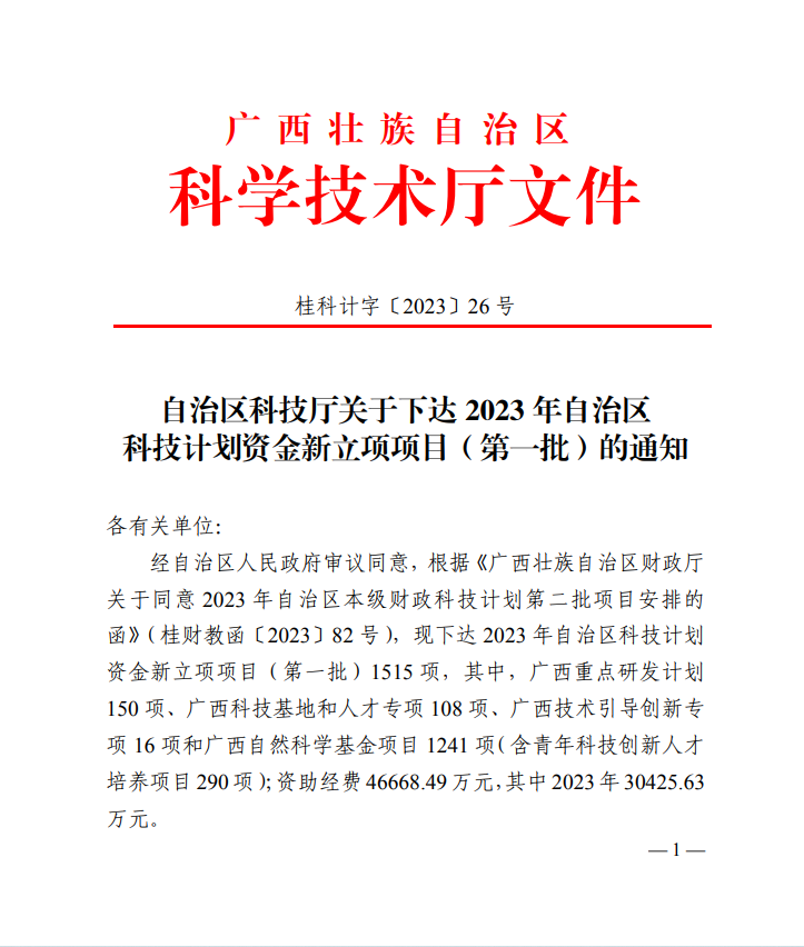 据悉,广西重点研发项目聚焦我区国民经济与社会发展的重点公共需求和民生科技优先领域,围绕广西重大战略,针对事关国计民生的农业、工业、能源、资源、生态环境、公共安全等领域开展科技攻关、成果转化等,产学研集成度高、关联度大、带动性强。