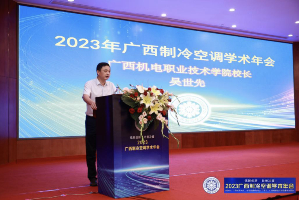 吴世先校长致辞中强调,作为我国装备工业的有生力量和国民经济的重要组成部分,制冷空调行业在国家节能减排事业中,在“双碳”目标下担负着不可或缺的责任和义务,也是面临的一场革命性挑战,将带来全产业生态链的革新和重构。吴校长指出,本次大会的召开,必将进一步深化广西制冷空调领域的产教融合、校企合作,必将进一步促进广西制冷空调产业绿色低碳发展,必将进一步为壮美广西建设做出制冷空调人应有的贡献。