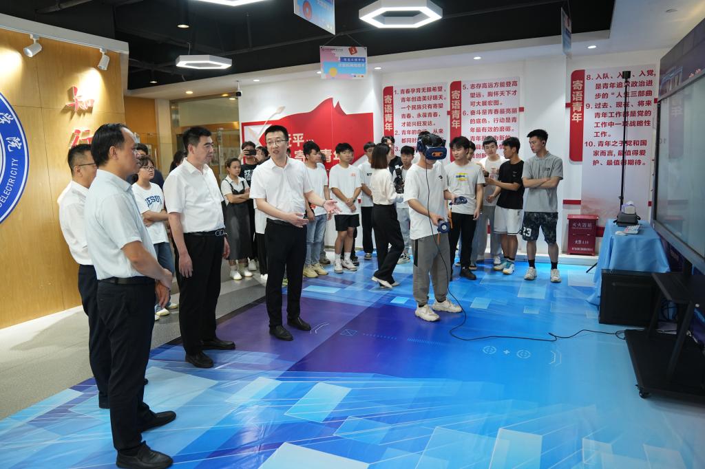 在商学院,校领导观看电子商务专业学生进行的电商农产品直播、物联网应用技术专业学生设计的“生态养鸡智能平台系统”以及“互联网+乡村振兴”大学生创新创业项目,详细了解专业老师带领学生从团队的组建、培训、平台搭建、直播页面制作、创意实施等过程。在信息工程学院,校领导戴上VR设备,体验“元宇宙”工业、红色文化、虚拟现实文旅等项目,听取学院负责人关于“元宇宙”技术在开云相关专业中辅助教学的应用及发展趋势的介绍,鼓励教师积极利用数字技术探索数字课堂等多种教学模式的创新,实现教学的数字化转型升级,培养符合数字时代需求的新型职业技术人才。