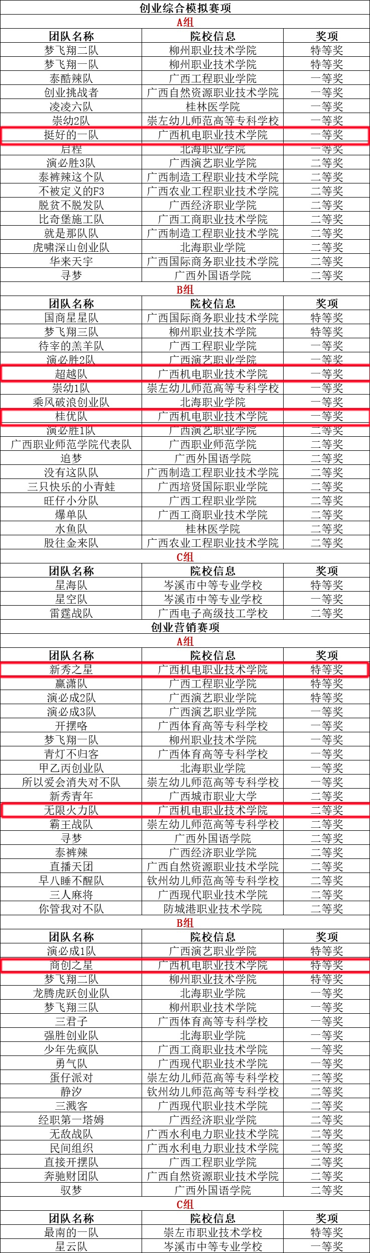 “学创杯”全国大学生创业综合模拟大赛广西赛区选拔赛,是由广西壮族自治区教育厅主办、面向大学生开展的培养创新创业精神和实践能力的一项权威性竞赛活动。该比赛分为两个赛项,分别是创业综合模拟赛项和创业营销赛项。本次大赛吸引了全区25所高职院校共119支队伍参与,大赛设特、一、二等奖,比例分别为10%、20%、30%。开云派出的6支代表队均获佳绩。