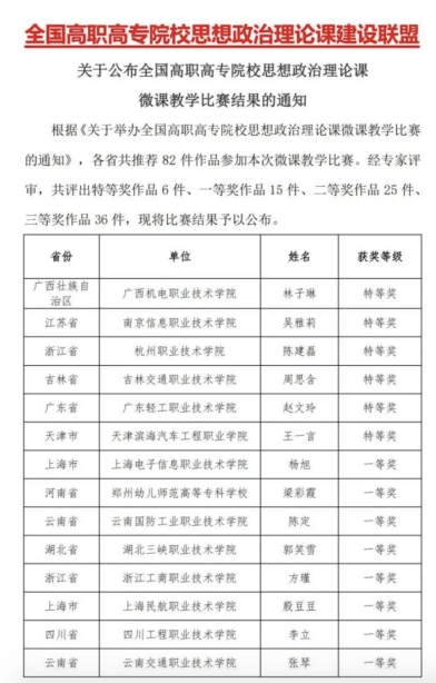 在全国高职高专院校思想政治理论课建设联盟成立十周年之际,联盟举办了第二届全国高职高专院校思想政治理论课微课教学比赛。各省共推荐82件作品参加本次微课教学比赛。