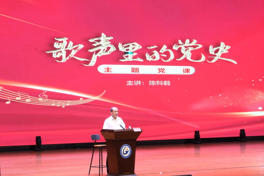典礼结束后,陈科鹤以《歌声里的党史》为题给培训班学员上了一堂震撼心灵的党课。