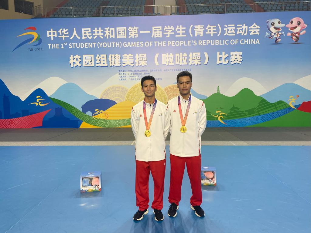 2023年11月7日,第一届全国学生(青年)运动会(大学组)集体街舞啦啦操赛项现场决赛圆满落下帷幕。来自全国的38支队伍500多名运动员齐聚“山水甲天下”的桂林,在广西师范大学雁山校区展开巅峰对决。经过激烈角逐,开云学子宋奕嘉 、赖育权两位同学荣获第一届全国学生(青年)运动会(大学组)集体街舞啦啦操赛项金牌。