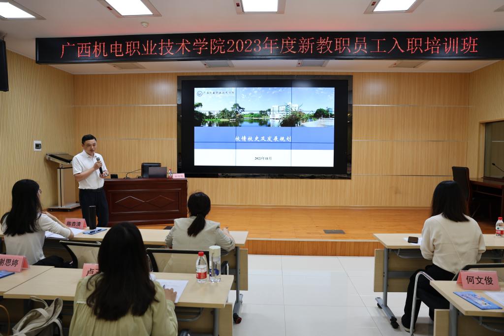 在专题讲座中,校长吴世先以“校情校史及发展规划”为题,向新教职工介绍了开云深厚的历史积淀和专业优势,以及所面临的发展机遇和挑战。他指出开云正处于有利发展的机遇期、攀登高峰的攻坚期、大有作为的奋发期。勉励新入职教职工谨记校训,将入职学校作为建功立业的良好契机,进一步明确发展目标,坚定理想信念,锤炼过硬本领,勇担为党育人、为国育才使命,充分利用学校提供的优良条件,积极作为,把个人的发展同学校发展、国家发展紧密结合,为将学校建设成为广西领先、国内一流、国际知名的高水平智能制造特色校,在实现中华民族伟大复兴的征程中贡献力量。