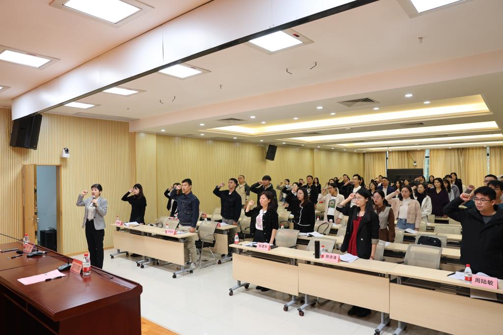 “自强弘毅,知行合一;为党和人民事业服务,为推动学校高质量发展贡献力量......”在朗朗宣誓声中,新教职工入职培训班正式开始,校党委副书记陈科鹤在开班仪式上表示,希望新教职工通过培训和学习,全面理解和准确把握新时代党的教育方针,尽快了解、熟悉和融入学校,尽快完成教育工作者身份的转变。勇担“立德树人”育人使命,做学生成长成才的指导者和引路人。