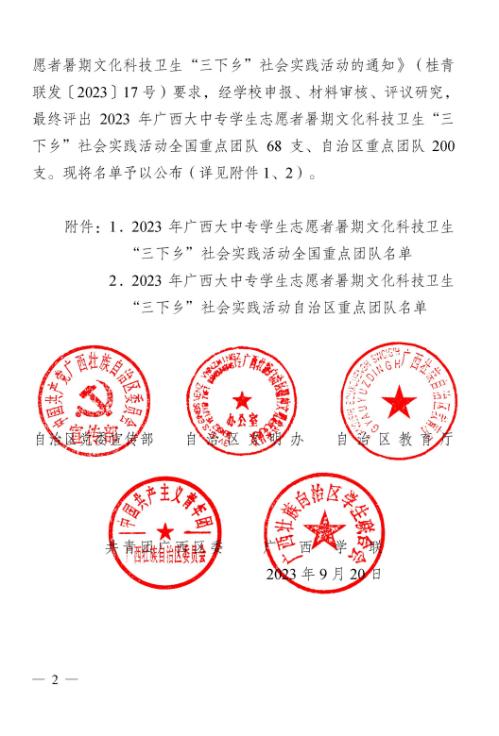 近日,自治区党委宣传部、自治区文明办、自治区教育厅、共青团广西区委、广西学联公布了2023年广西中大专学生志愿者暑期文化科技卫生“三下乡”社会实践活动重点团队评选结果。开云建筑青年助力乡村振兴实践团被评选为自治区重点团队。
