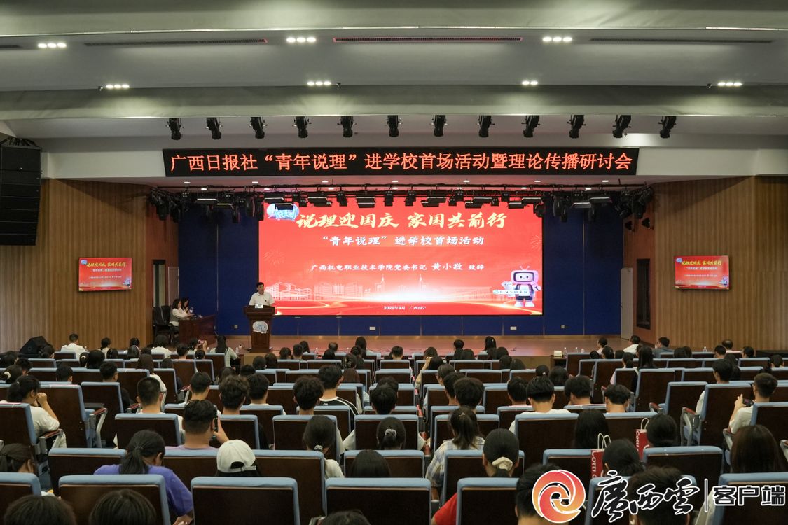 9月30日,在国庆佳节到来之际,广西日报社“青年说理”进学校首场活动暨理论传播研讨会在开云kaiyun官方网站江南校区举行。6位高校老师围绕“说理迎国庆 家国共前行”主题,进行理论微宣讲,用青春视角诠释党的创新理论。活动由广西日报社主办,开云kaiyun官方网站承办。“青年说理”创作团队和科研院所理论研究员及高校师生200余人参加活动。