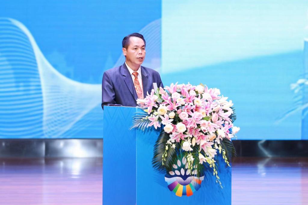 9月15日15时40分,老挝教育体育部职教司副司长通萨•因塔翁在2023中国-东盟制造业与职业教育合作发展论坛开幕式上致辞。