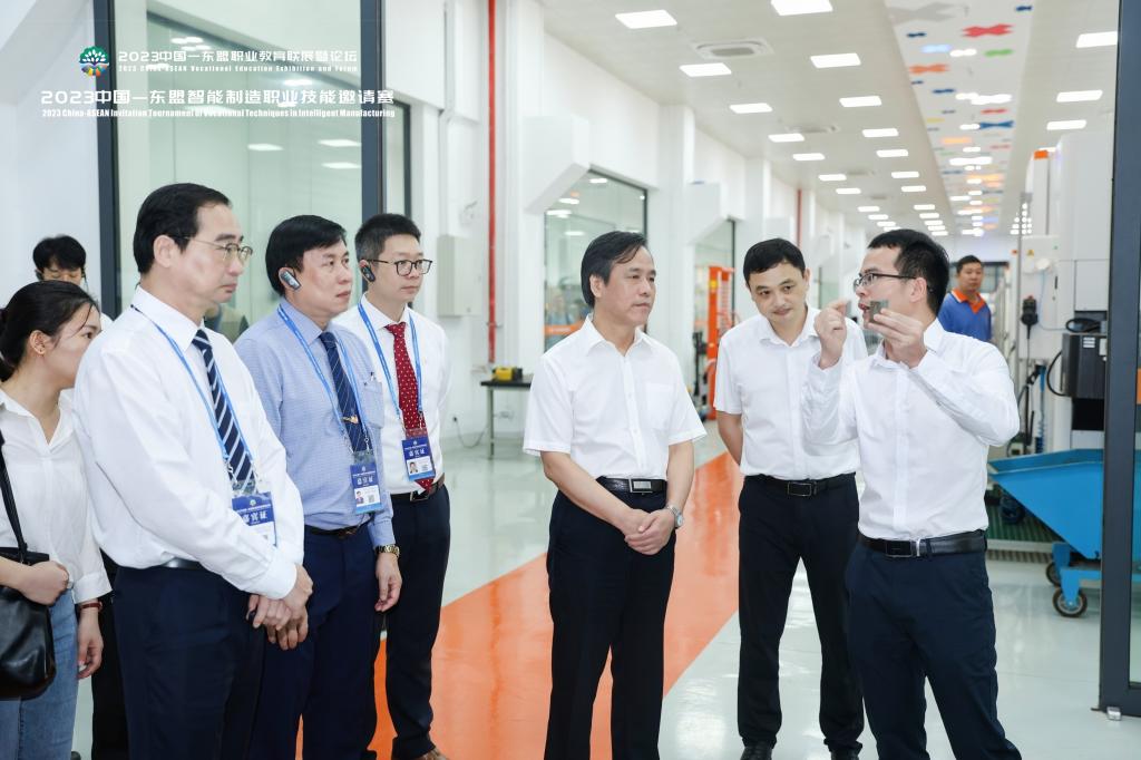 9月16日上午,出席2023 中国—东盟智能制造职业技能邀请赛开幕式的嘉宾参观开云教育部-瑞士GF智能制造创新实践基地。