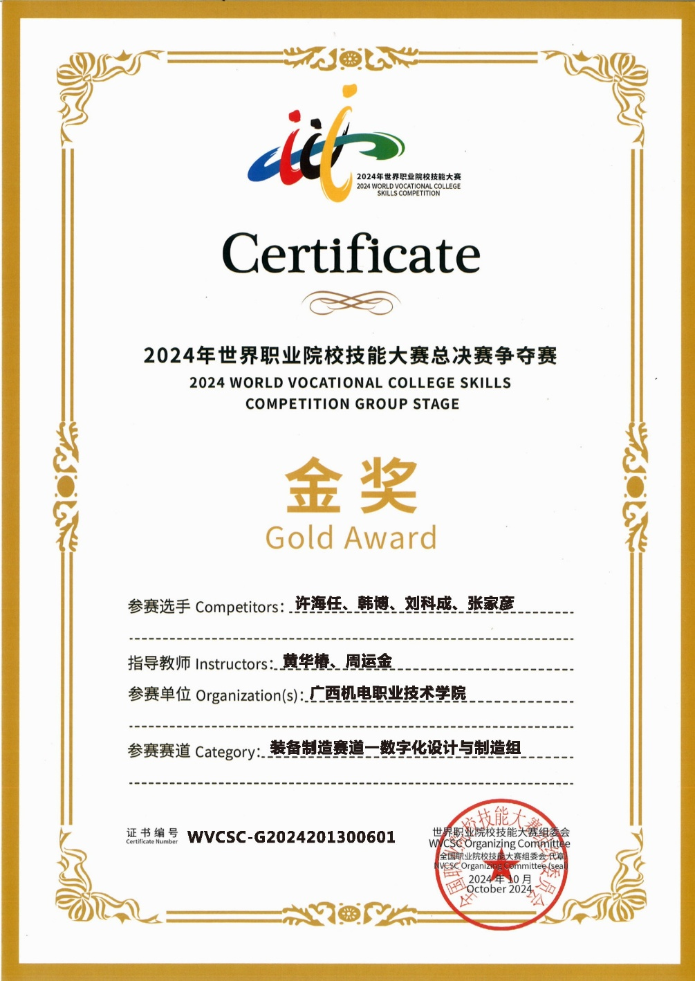 指导学生参加世界职业院校技能大赛争夺赛获得金奖