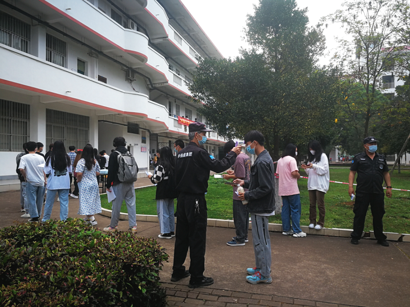 在新冠肺炎疫情常态化防控时期,信息工程学院制订了详细的应急预案,考务工作增加测温、查验健康码、行程码、疫苗接种情况、考场消杀、个人消杀、佩戴口罩等环节。考试期间,学院办公室、后勤、保卫等职能部门集中办公,做到发现问题快速反应、快速研判、快速处置,确保了考试工作顺利进行。各考务人员迎难而上、攻坚克难,在承担大量繁杂考务工作的同时做好具体的疫情防控工作,切实做到考生安全、考务人员安全、考试安全。